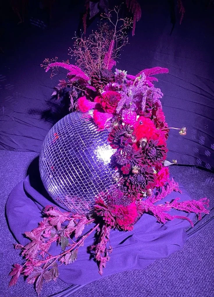 Mirrorball floral installation for Twirl PDX Queer Disco